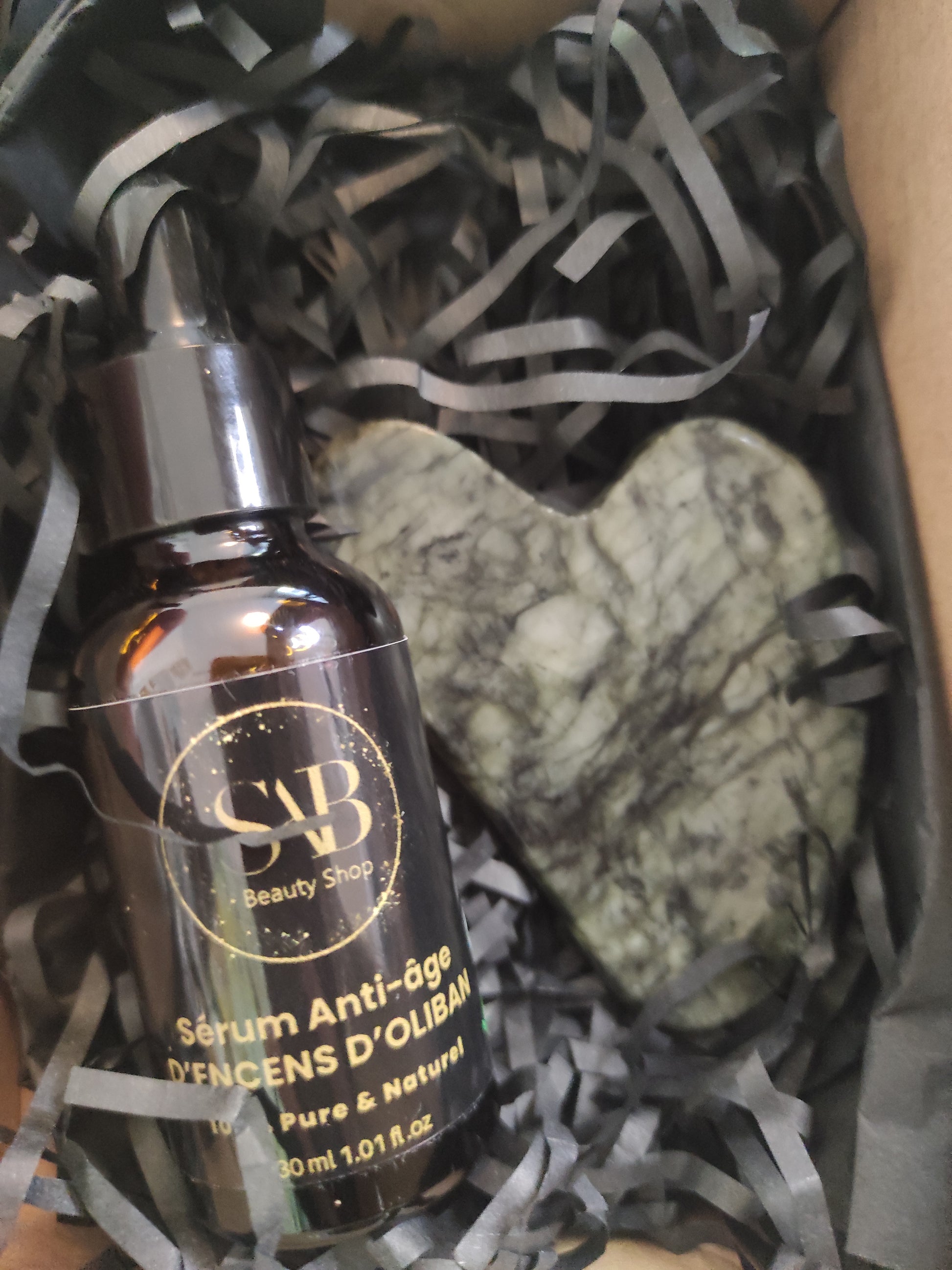 Découvrez notre duo exclusif pour une peau visiblement plus ferme et éclatante : le sérum à l'encens d'oliban pour lisser er regénérer, accompagné du guasha faciales pour stimuler la circulation et réduire rides et poches. Une expérience beauté complète pour choyer votre peau au quotidien.